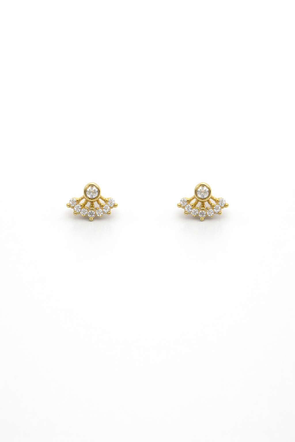 Pure silver gold-toned stud earrings with a radiant fan-shaped crystal design for delicate everyday elegance.