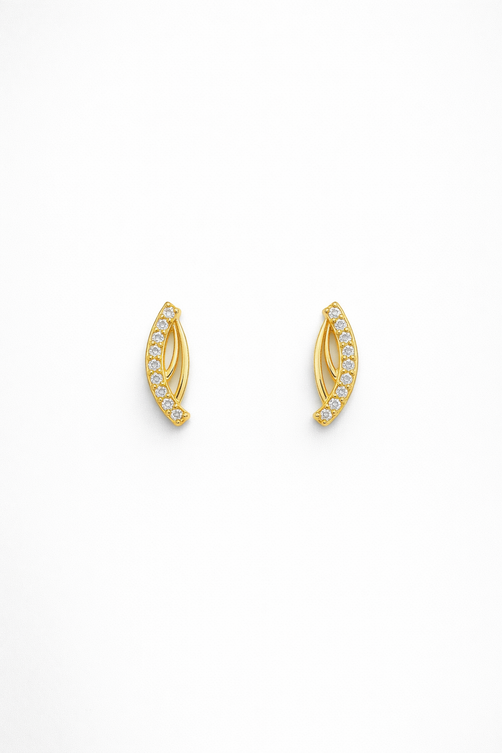 The Aurora Leaf Arc Stud Earrings are a graceful fusion of nature-inspired beauty and contemporary craftsmanship. Made from pure silver and finished in a radiant gold tone, these earrings feature a softly curved, leaf-like silhouette adorned with sparkling crystals along the outer edge.