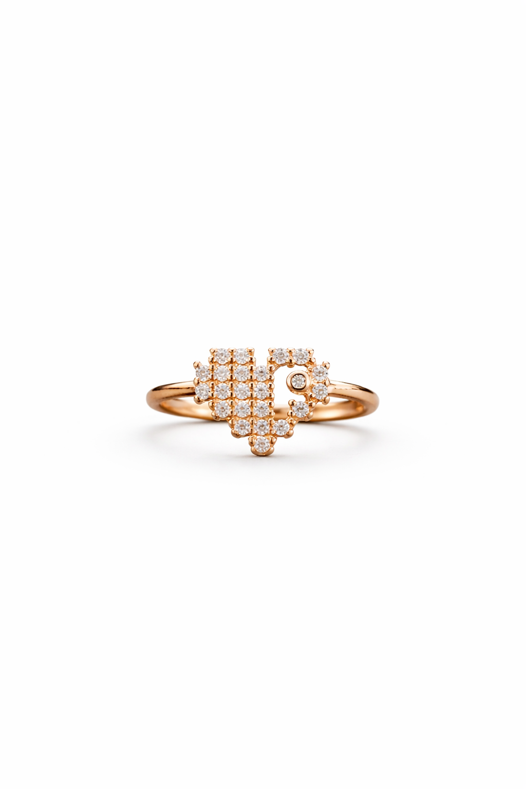 A pure silver ring with a rose-gold finish, featuring a sparkling heart-shaped design that symbolizes love, warmth, and devotion.