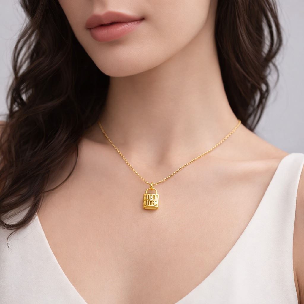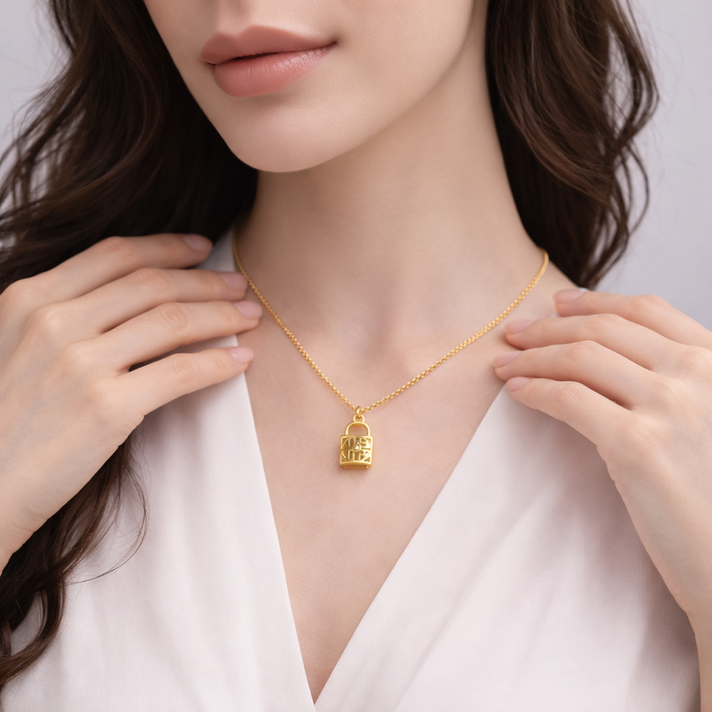 Suspended from a fine silver chain, the Golden Promise Lock Pendant rests comfortably against the skin, making it ideal for everyday wear or special occasions. Its versatile design pairs effortlessly with both casual and formal outfits, adding a meaningful accent to any look.