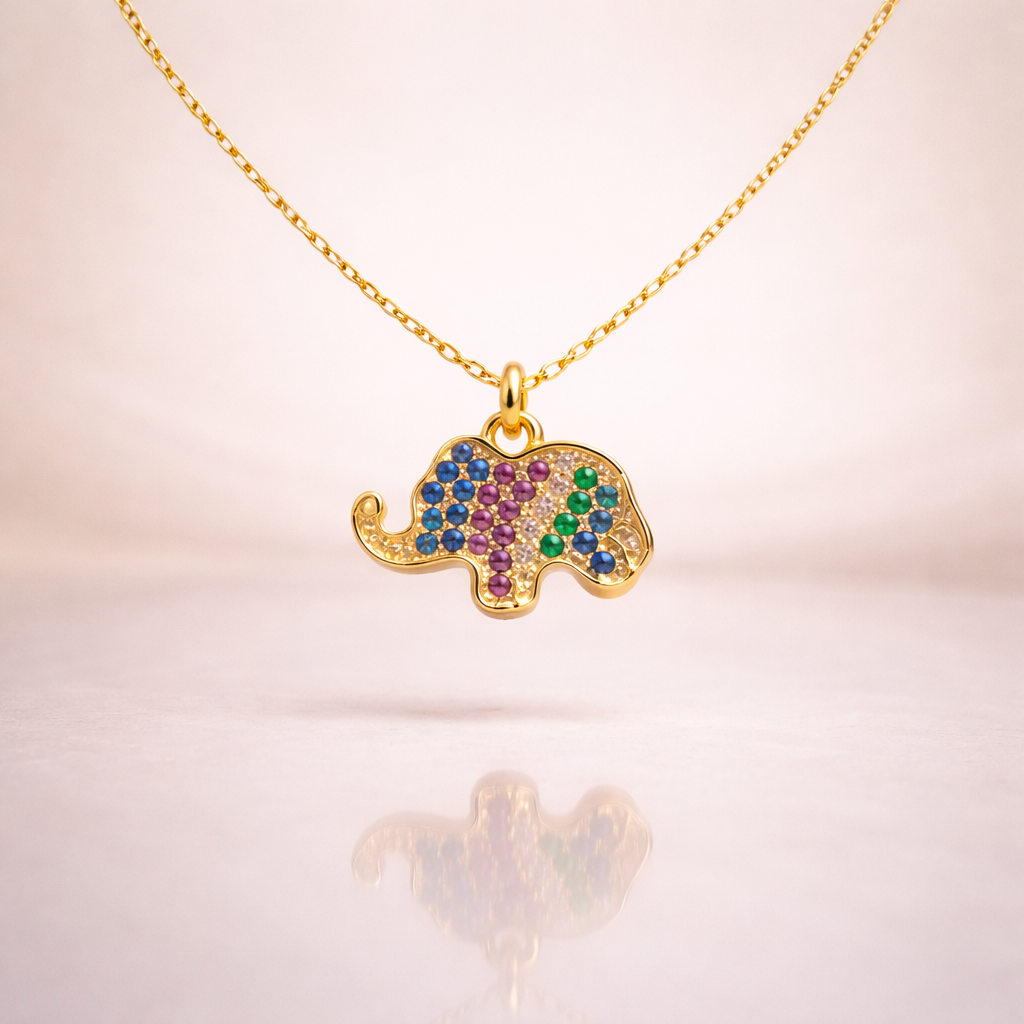 The Prism Elephant Charm Pendant is a beautiful celebration of color, craftsmanship, and positive symbolism. Expertly crafted from high-quality pure silver and finished with a radiant gold-tone polish, this pendant captures the gentle strength and wisdom of the elephant—an enduring symbol of good fortune, loyalty, and prosperity.