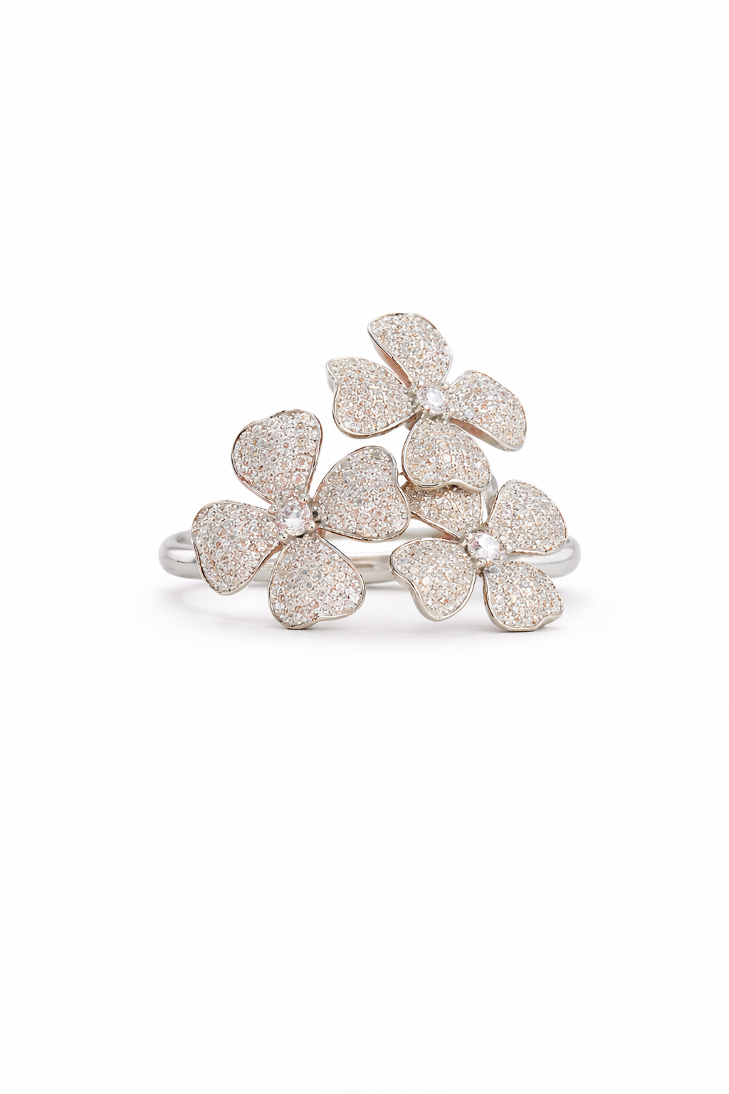 Inspired by flowers in full bloom, this ring symbolizes renewal, femininity, and understated luxury. Its balanced design makes it perfect for everyday wear while still being striking enough for special occasions. Whether worn alone as a statement piece or paired with other silver jewelry, Silver Blossom Grace brings a sense of refined charm and artisanal craftsmanship to your collection.