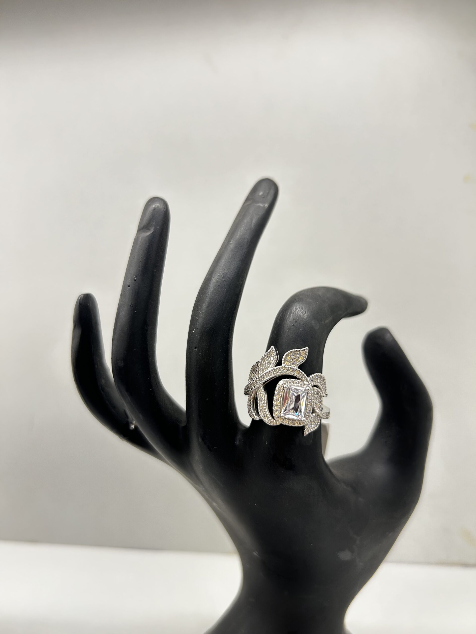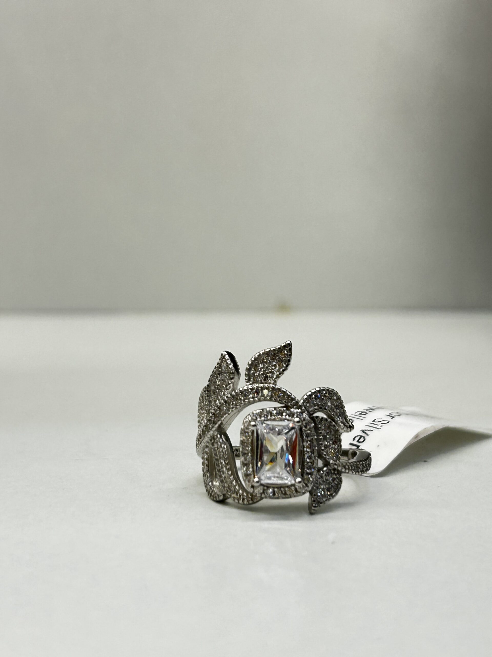 A pure silver ring with a graceful leaf and flower design, inspired by nature’s beauty and elegance.Details