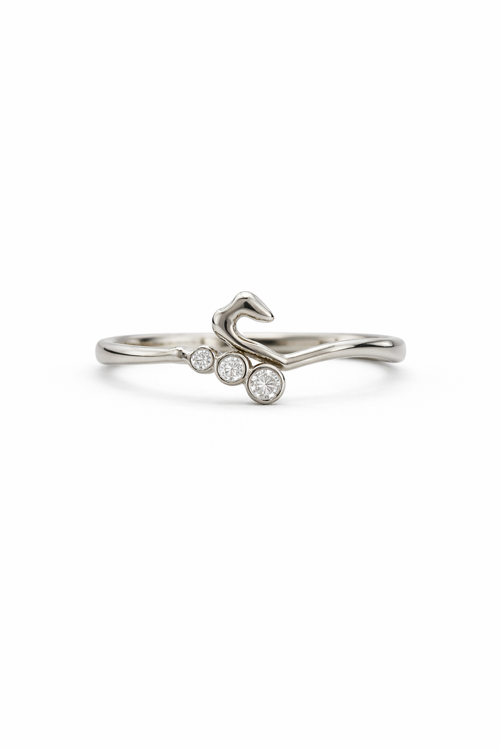 A sleek pure silver ring featuring a graceful serpent-inspired curve accented with three sparkling stones for a modern, symbolic touch.