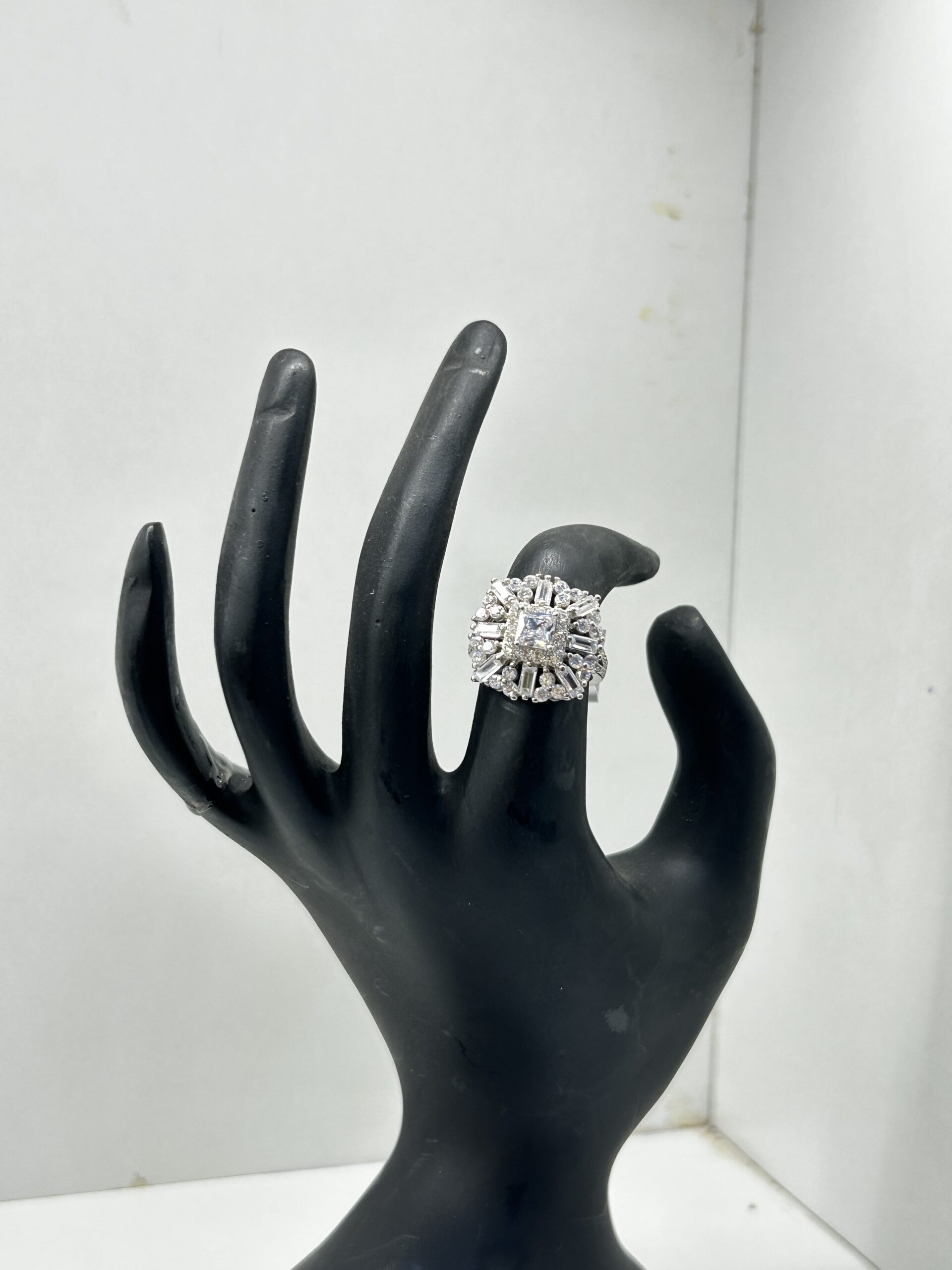A stunning pure silver ring with a square sparkling design that adds elegance and shine to any look.Details