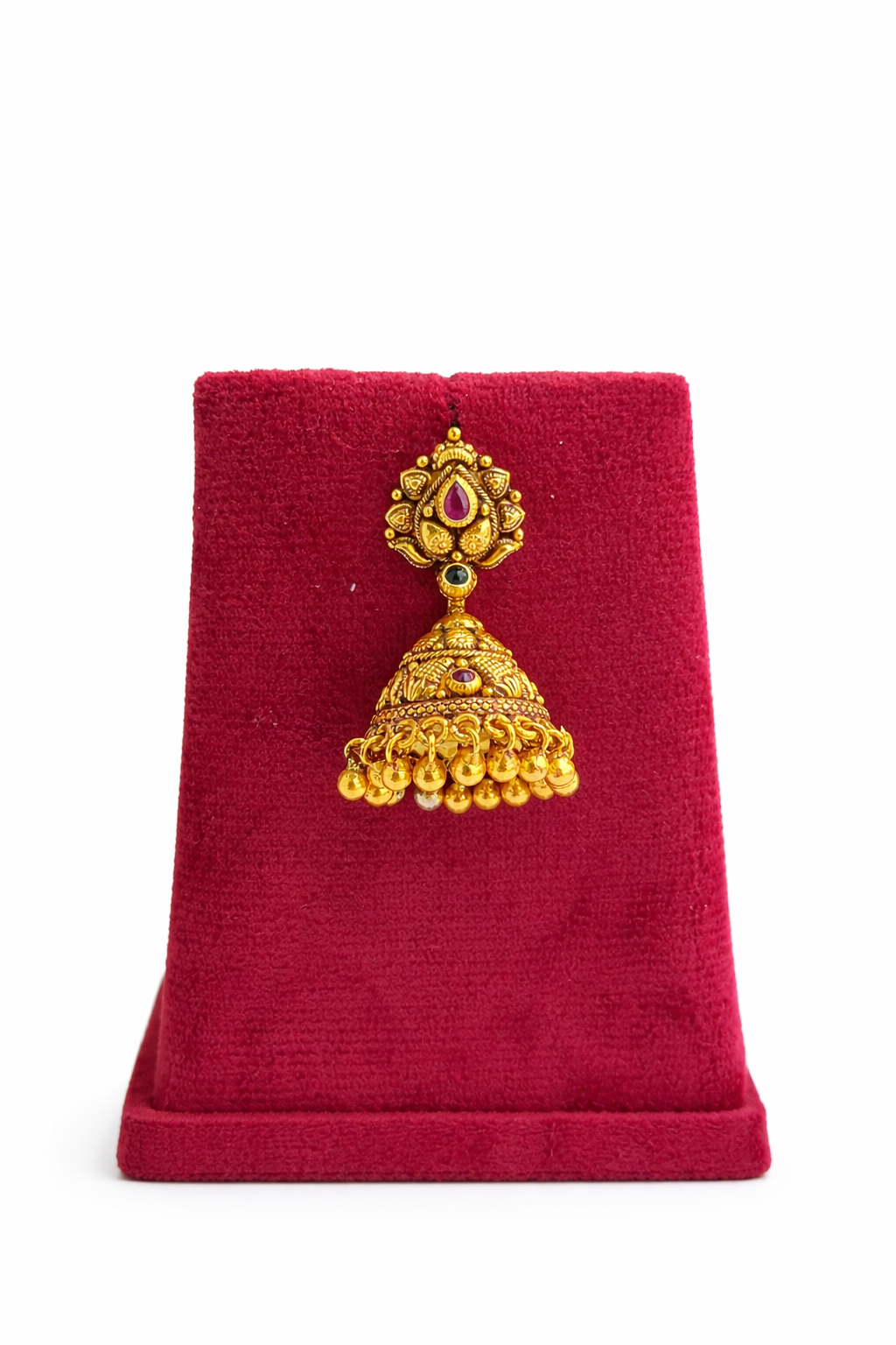 An exquisite temple-style necklace crafted in pure silver and finished with elegant 1-gram gold plating, showcasing timeless traditional artistry and graceful detailing.